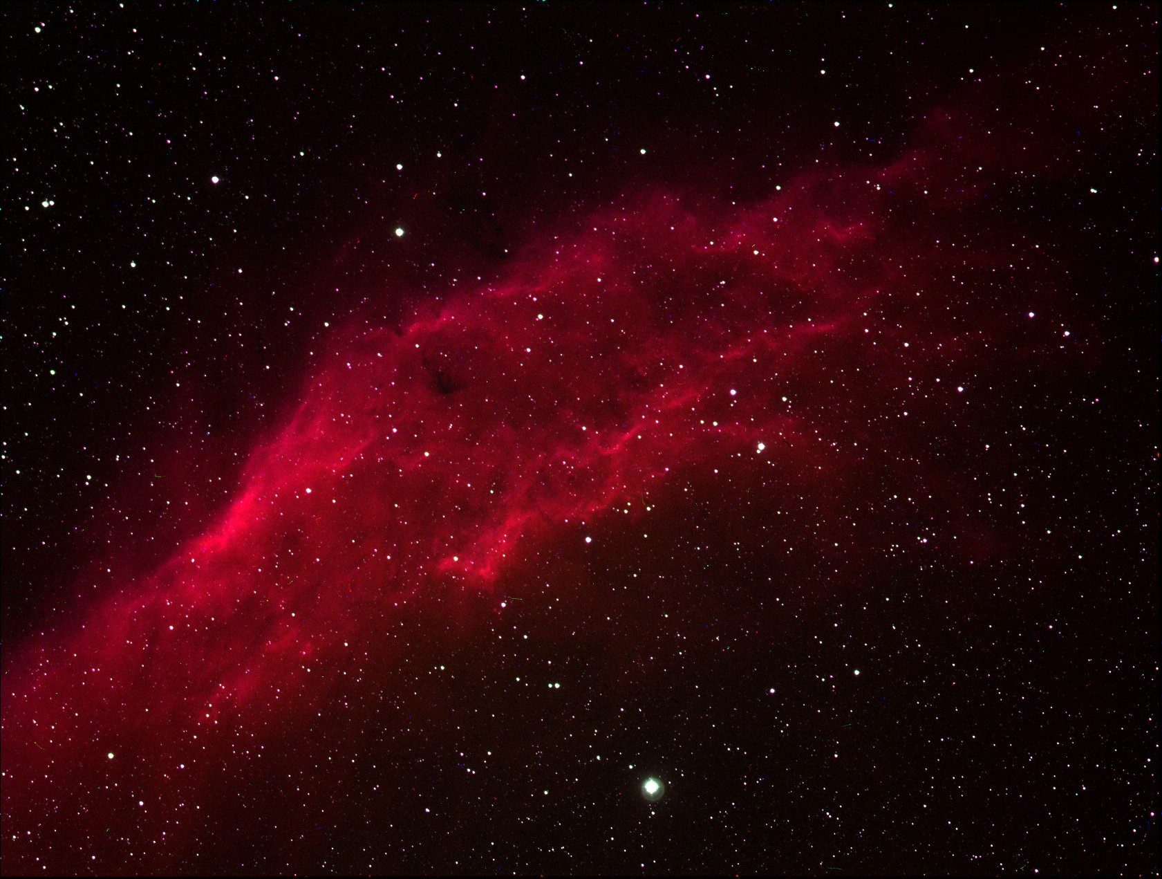 California Nebula NGC 1499 Other description: Nebula low brightness. Constellation: Per Dreyer description: Very faint, very large, extended north-south, diffused. RA: 04h 01m 39.0s Dec: +36°39'15" RA: 04h 00m 42.0s Dec: +36°37'00" (Epoch 2000) ******* 9/23/2003 ******* Narrow Band Filter Image: 11/02/13 with AT-65, SBIG 8300M - Orion HSO (H-alpha- Sulfur II- Oxygen III) 30min @, Nautilus ASCOM filter wheel, Nebulosity 3, Atlas EQ-G w/Orion SSAG. |