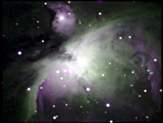 in Orion NGC 1976 Other description: Nebula. Constellation: Ori Dreyer description: A magnificent (or otherwise interesting) object! Theta1 Ori and the great nebula; = M42. Magnitude: 4.0 RA: 05h 35m 24.0s Dec: -05°27'00" (Epoch 2000) ***********Image Log************ This is a series of Meade DSI images combined and processed in MaxImDL. |