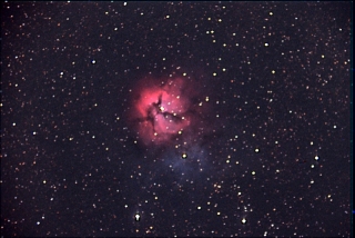 Trifid Nebula, M20, NGC 6514 ***********Image Log************ 7/31/2005 - Color RGB combine of 2 X 60 seconds RG and 3 X 60 second B. Click the image for a larger version. This image was taken with a TeleVue 102 and ST-402ME. Click on the image for a larger version. |