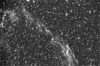 Segment), NGC 6992 Other description: Nebula. Constellation: Cyg Dreyer description: Very remarkable! Pretty bright, considerably large, extremely irregular figure, 52 Cyg involved. RA: 20h 45m 51.0s Dec: +30°43'58" RA: 20h 45m 42.0s Dec: +30°43'00" (Epoch 2000) ***********10/11/2003************ This is an image of the Veil Nebula with 4 60 second images stacked through a TeleVue 102 and ST-402ME. Click on the image for a larger version. |